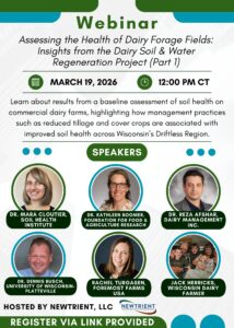 The first webinar, focused on Wisconsin’s Driftless Region, is set for March 19, from 12 to 1 p.m. CT. CLICK HERE TO REGISTER. Upcoming webinars in the series will cover findings in other major dairy regions of the U.S. (Dates are to be determined).